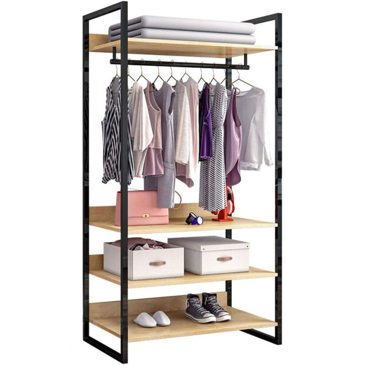 فاصله بین طبقه ها 30 سانتی متر است. ارتفاع بخش اویز 95 سانتی متر است. جنس صفحه ها از ام دی اف هستش قوطی 2در4 استفاده شده