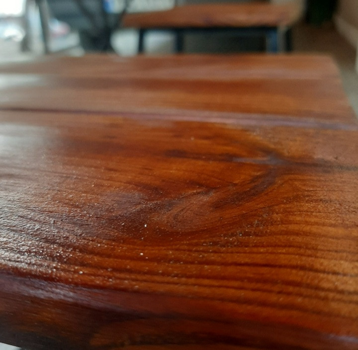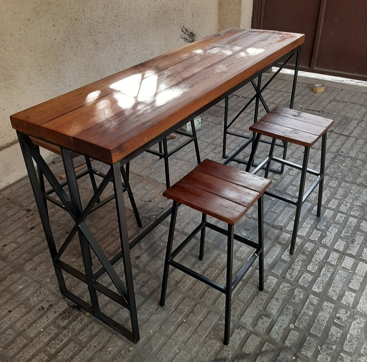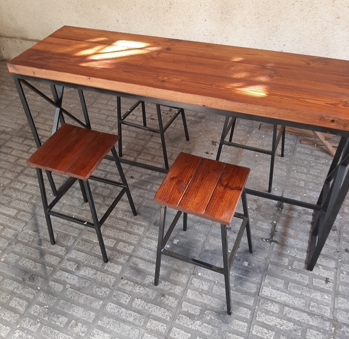 رویه میز ساخته شده از چوب ترمو وود درجه ۱ با قطر ۴ سانتی متر بوده و رویه صندلی ها از چوب ترمو وود با قطر ۲ سانتی متر میباشد،بدنه محصول فلزی بوده و در رنگهای مشکی مات و سفید قابل انتخاب میباشد