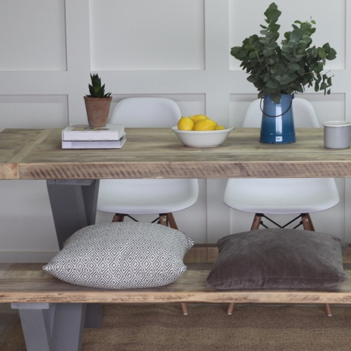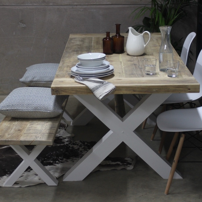 میز ناهارخوری بهمراه نیمکت (قابل انتخاب) ساخته شده از چوب طبیعی ترمو وود درجه ۱ با قطر ۴ سانتی متر