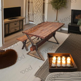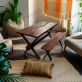 میز ناهارخوری و یک عدد نیمکت چوب و آهن مدل کیوود