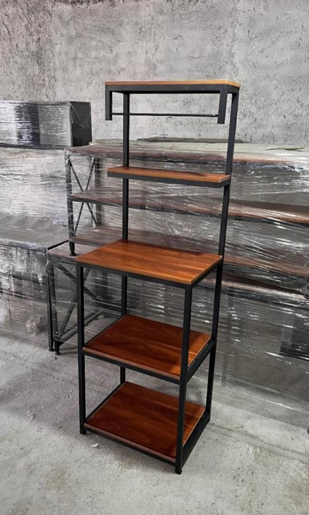 شلف و طبقه مناسب آشپزخانه و فروشگاه با چوب طبیعی ترموود بدنه آهنی با پروفیل آهن ۲۰ در ۲۰ و چوب طبیعی