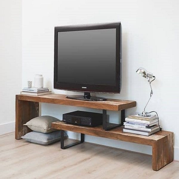 میز تلویزیون بسیار زیبا با طرحی خاص که با چوب طبیعی ترمو وود درجه ۱ با قطر ۴ سانتی متر و آهن ساخته میشود.