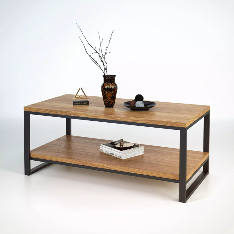 میزجلومبلی مدل A23 میزی در ابعاد ۱۱۰x۷۰x۵۰ است.این میز دو طبقه ای میتواند نظم و ظاهر زیبایی به فضای مورد نظرات بدهد این میز با پایه های فلزی از نوع پروفیل صنعتی 4*2 با رنگ مشکی کوره ای مقاوم در برابر خش و رطوبت با صفحات ملامینه قهوه ای رنگ و مقاوم ساخته شده است.